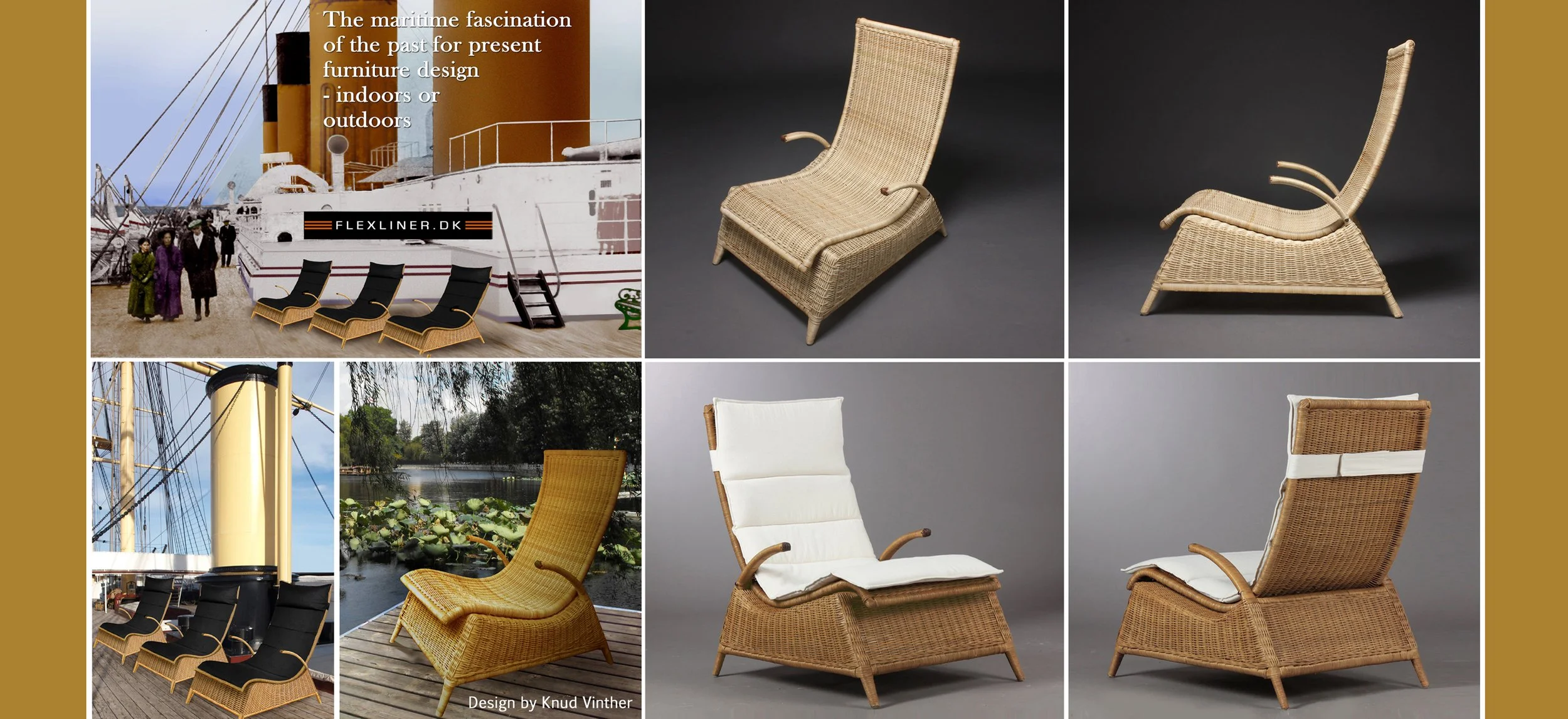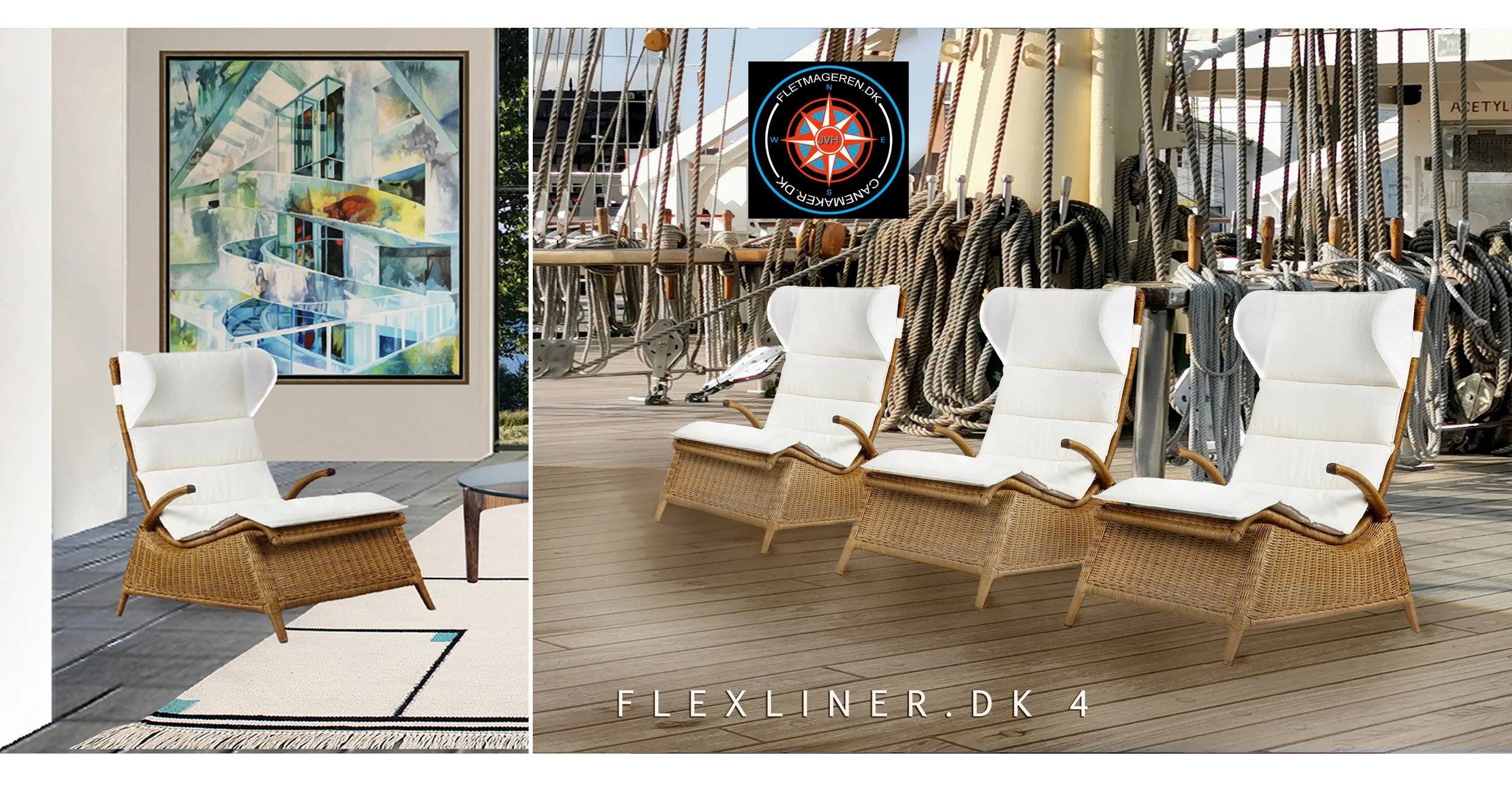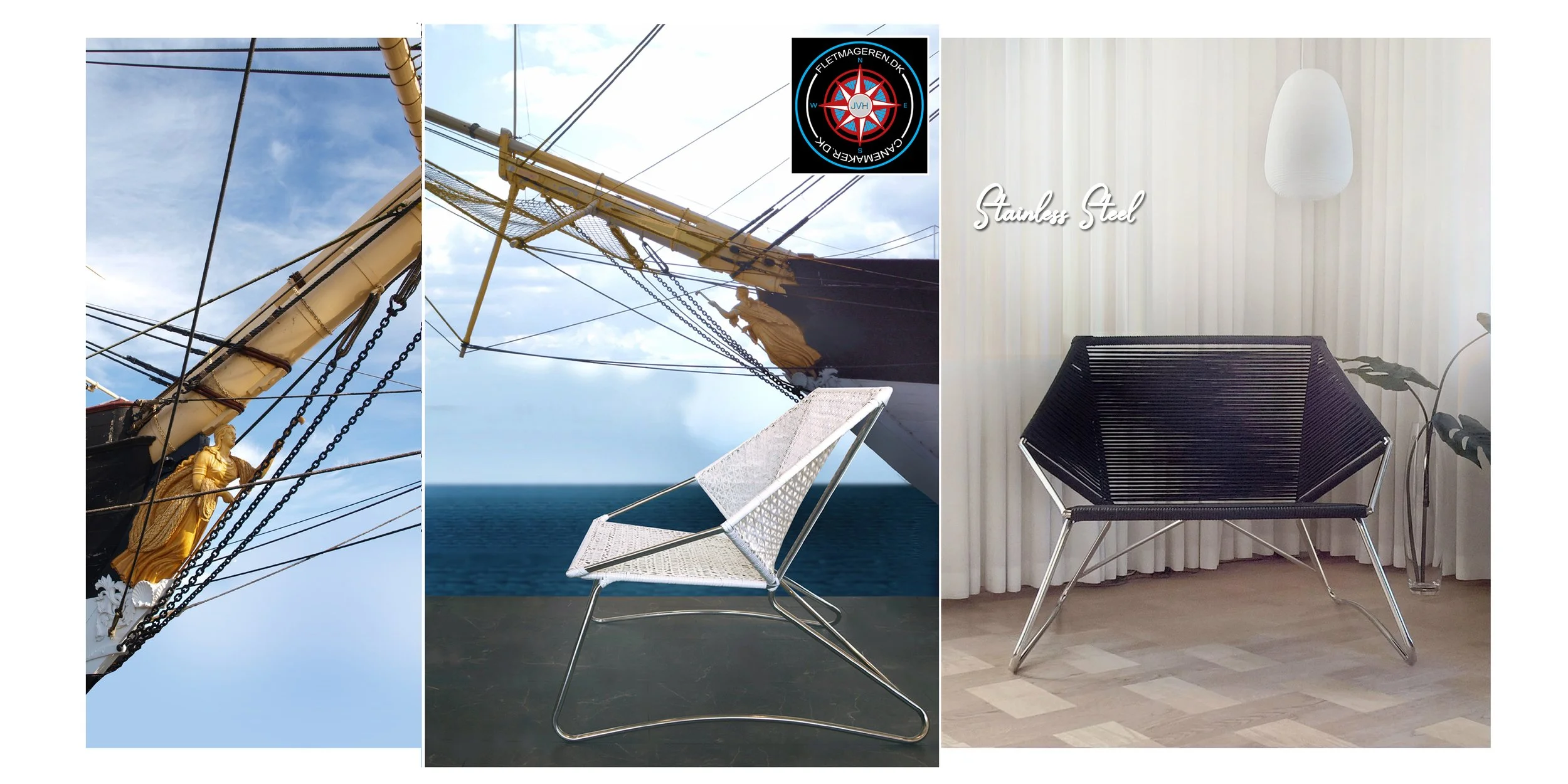 The old sailing ships with wind in the sails and life on deck have inspired furniture designers through all ages. Several of our furniture models have a maritime design with robust surfaces and stainless steel frames, and some of them can be used both outdoors and indoors. See www.flexliner.dk and www. spiderchair.dk.